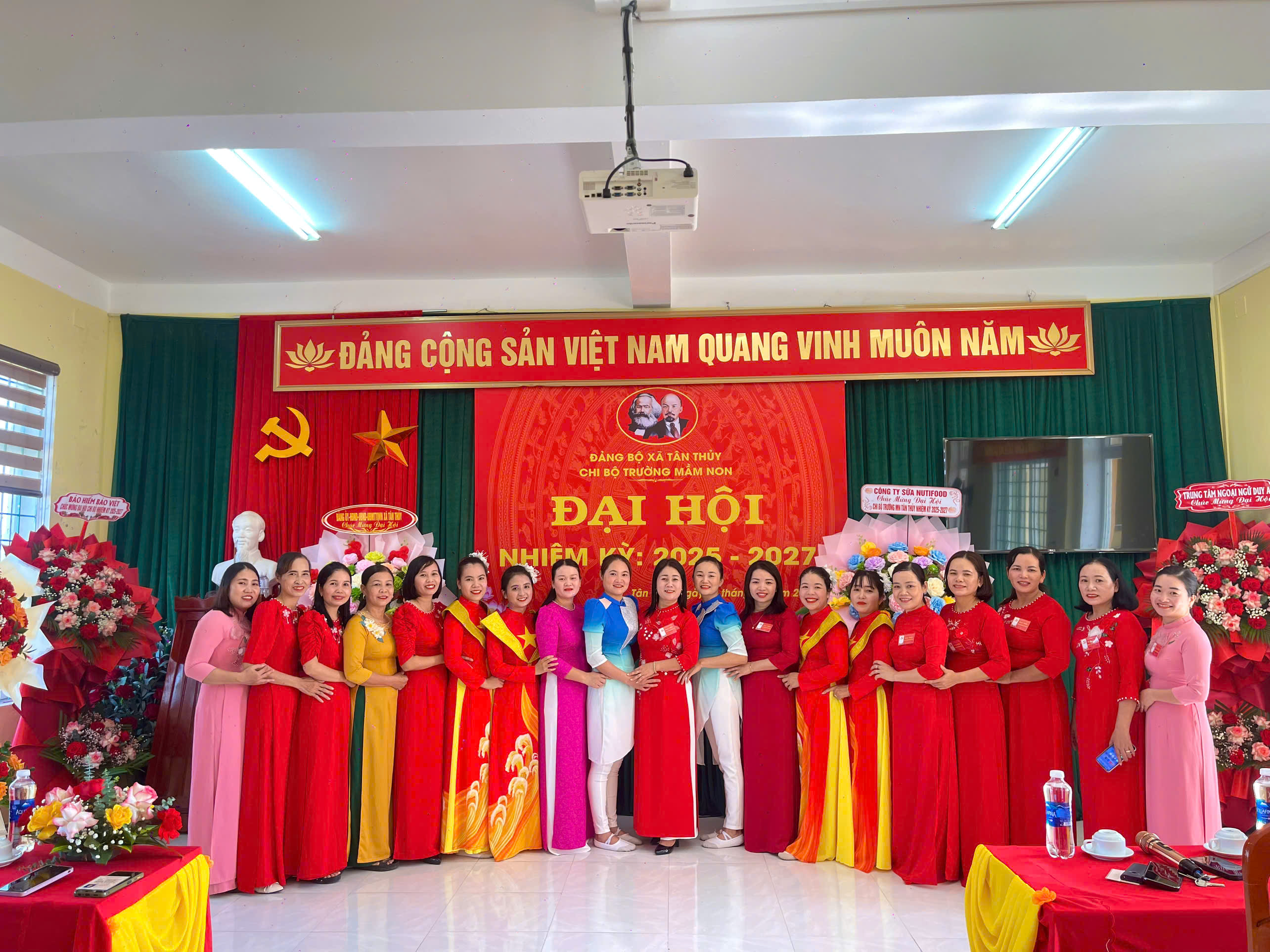 Thực hiện kế hoạch số 43/KH-ĐU ngày 6 tháng 11 năm 2024 của Ban thường vụ Đảng ủy về việc tổ chức đại hội các chi bộ trực thuộc nhiệm kỳ 2025-2027. Vào lúc 13h30p ngày 05 tháng 12 năm 2024 chi bộ Mầm non Tân Thủy tiến hành tổ chức đại hội nhiệm kỳ 2025 - 2027.